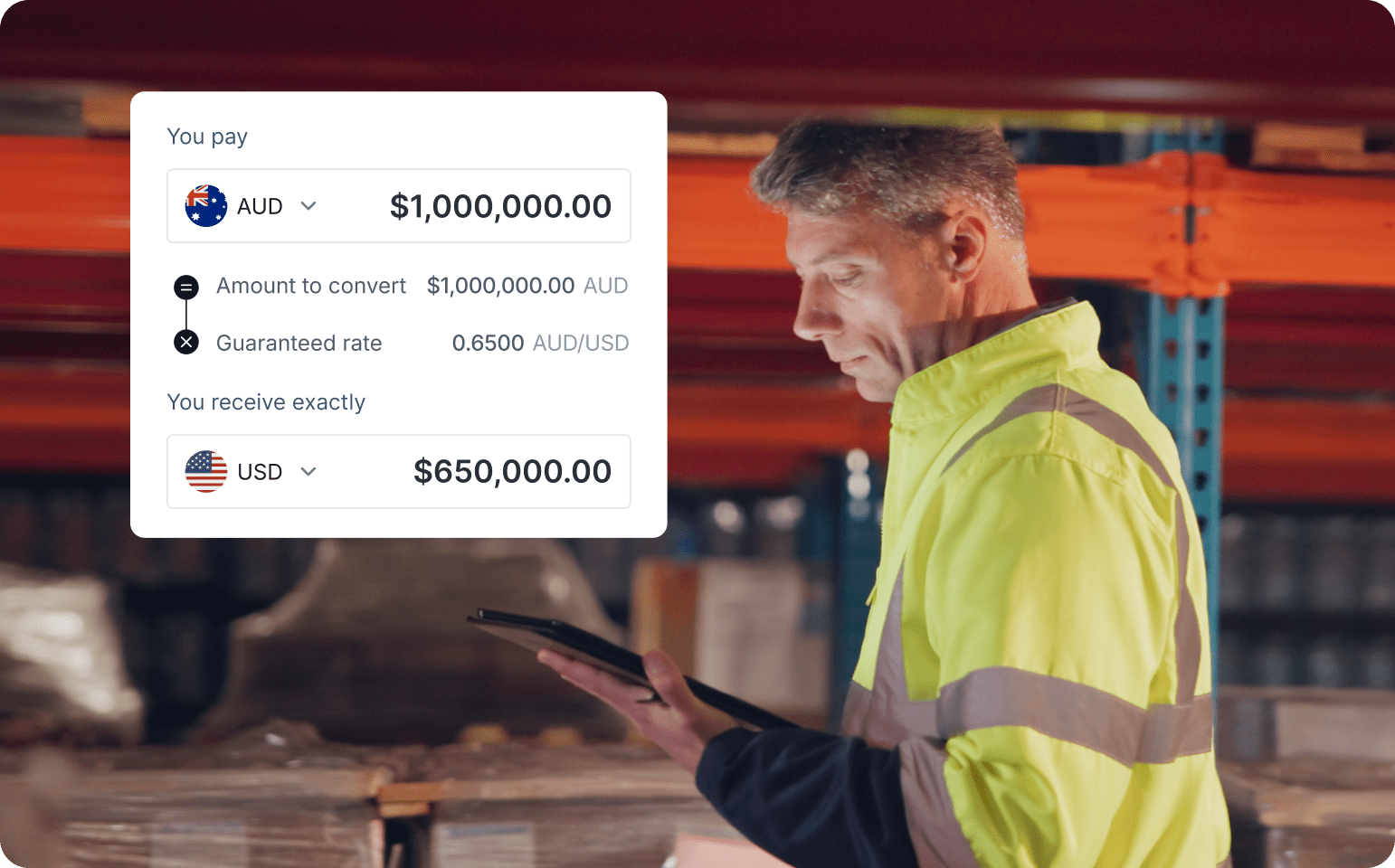 By using a Forward Contract, you can help protect your bottom line from FX volatility, accurately budget your costs and revenues, and gain peace of mind knowing your financial risks are minimised. Some clients use a Forward Contract for a portion of their FX transfers, as a way to partially hedge against volatility and ensure they can take advantage of Spot rates as well.