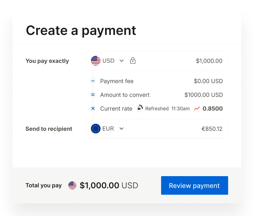 Access competitive exchange rates on every transaction. Say goodbye to hidden fees.