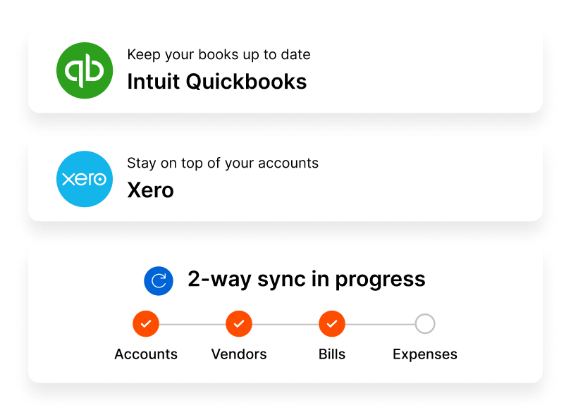Transactions sync seamlessly to QuickBooks Online or Xero. Even your foreign currency transactions effortlessly flow in. All perfectly updated. All on its own.