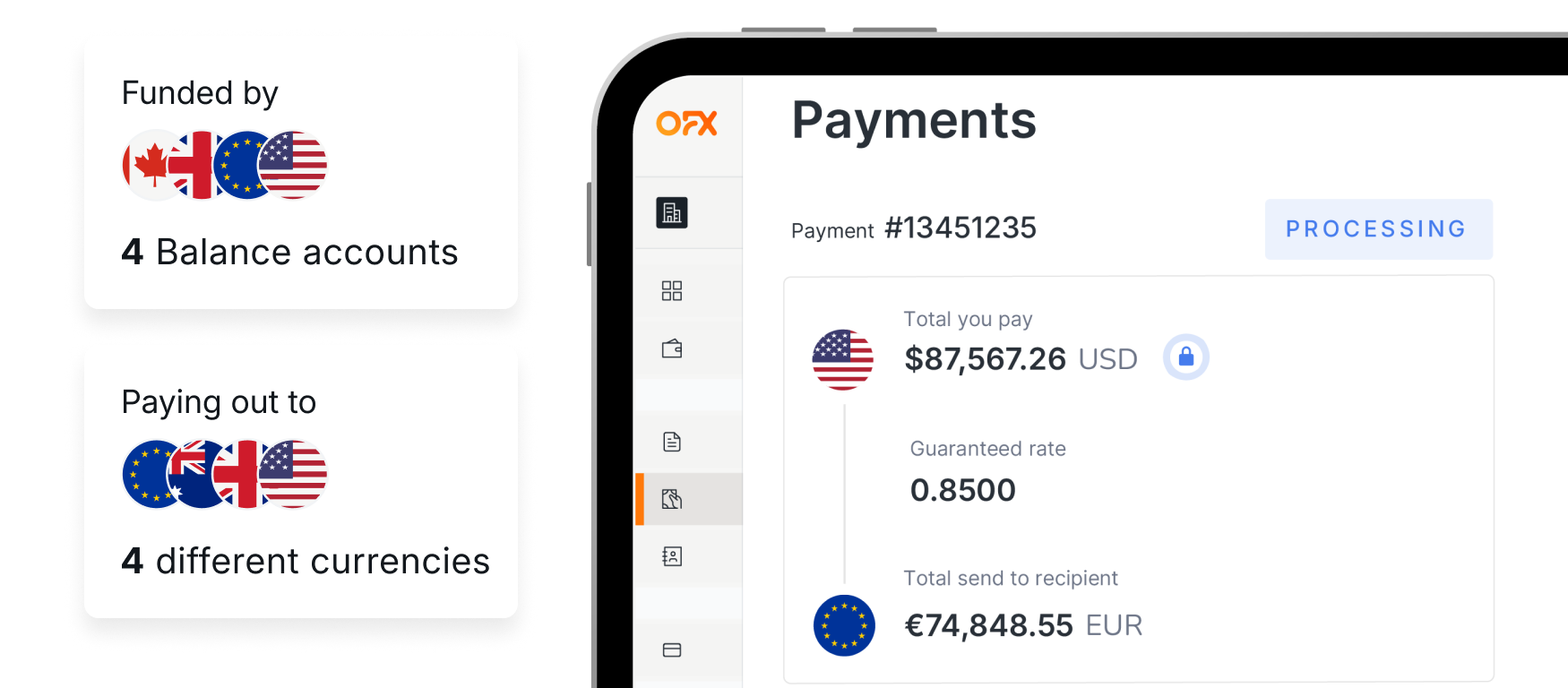 With the OFX Global Business Account, you have the ability to create and manage multiple currency accounts, where your customers can pay into any of these currency accounts.