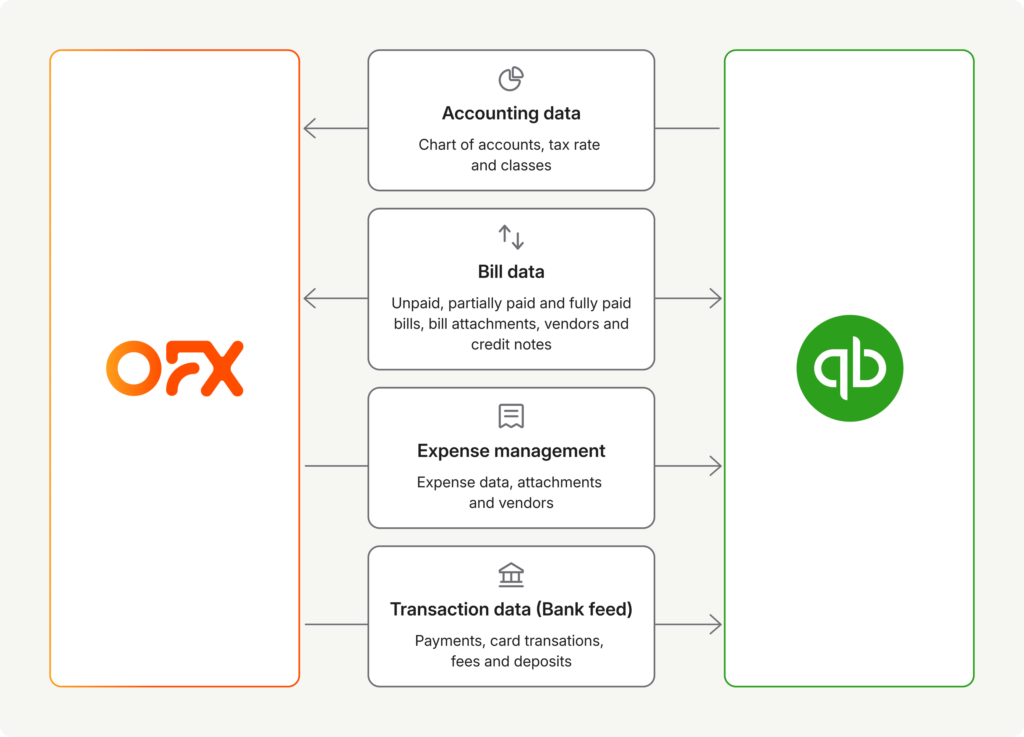 Ditch the double entry. With 2-way sync, bills, chart of accounts, and tracking codes move seamlessly into OFX, while transactions flow right back to QuickBooks Online.