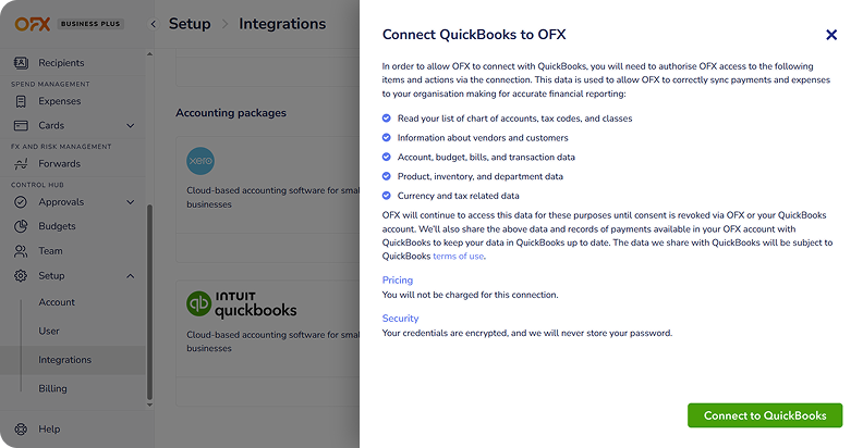 Can I connect my QuickBooks Online account to my OFX Global Business Account?